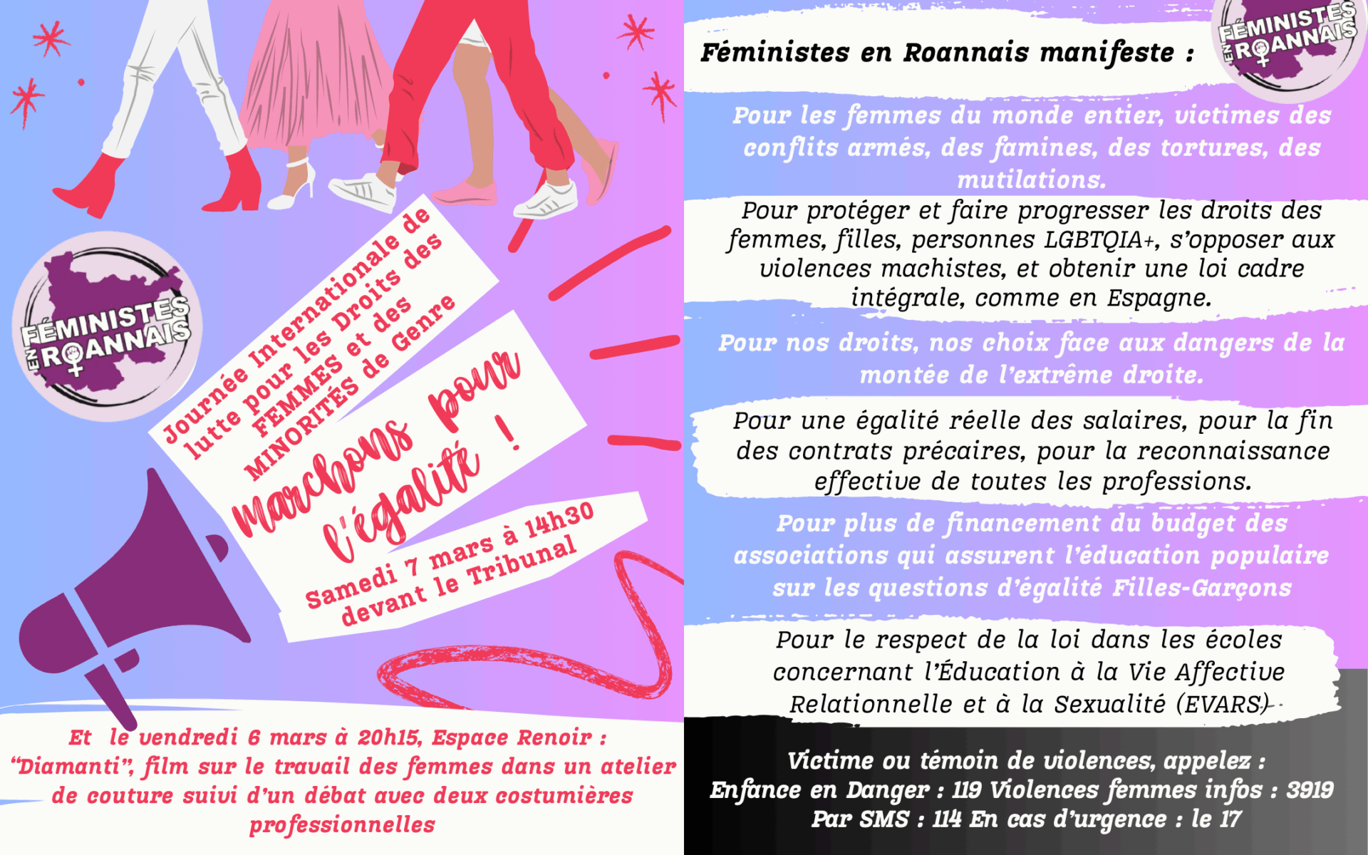 Féministes en Roannais est une association loi 1901 qui lutte :